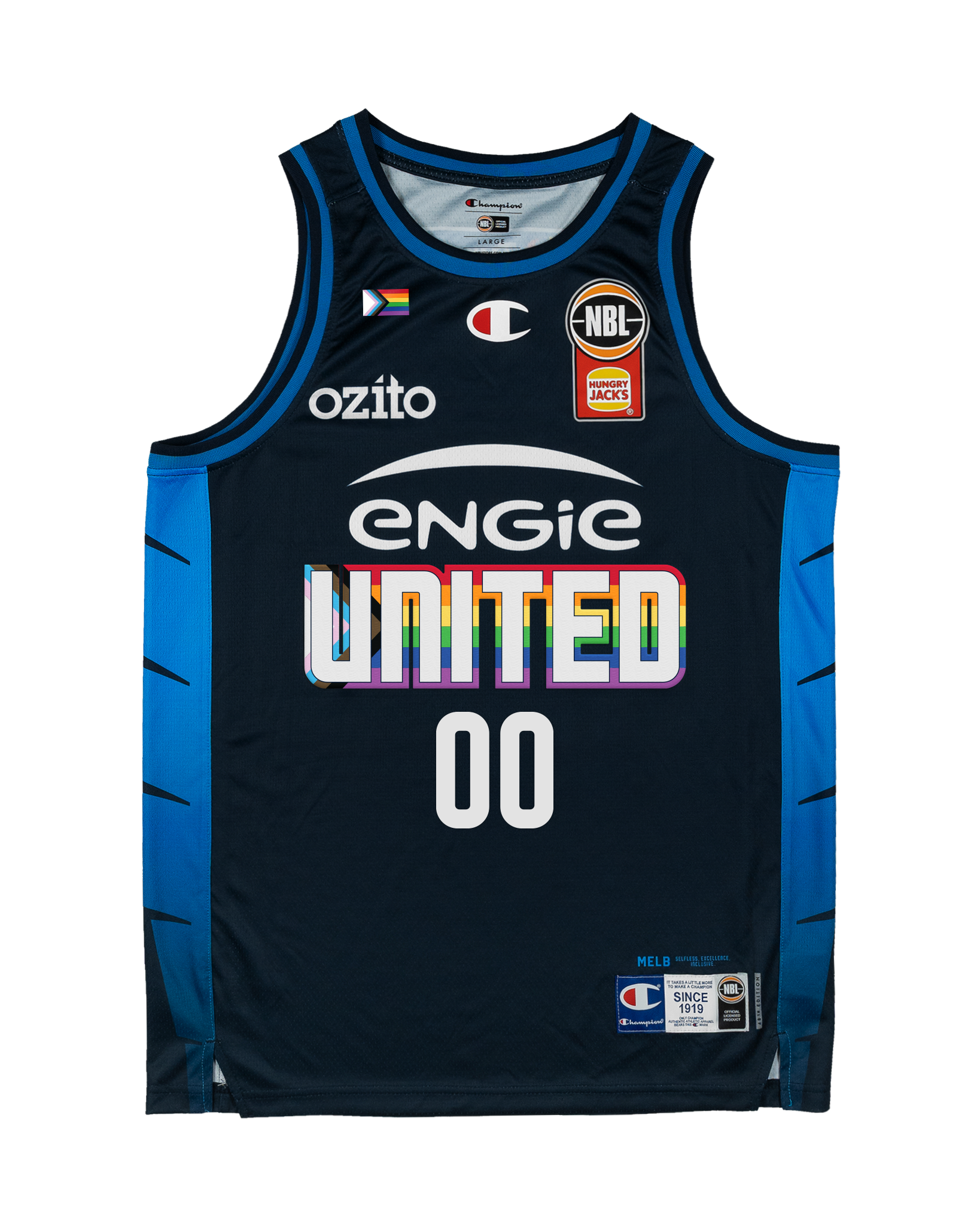 Celebrate Pride on and off the court with the Melbourne United 25/26 Pride Round Jersey - Other Players. In partnership with Champion, the Hungry Jack’s NBL continues to champion inclusivity and diversity within the LGBTQ+ community. This jersey embodies the belief that sport is for everyone—welcoming fans and athletes alike, no matter who they are. Wear it proudly to show your support for equality, representation, and the power of basketball to bring communities together.